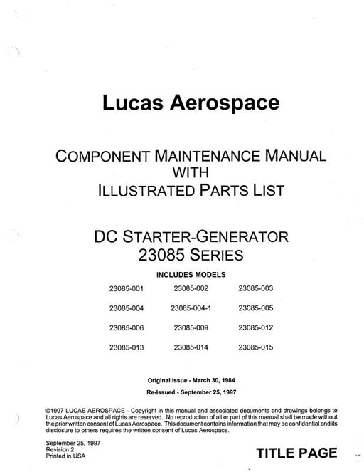 $115.00| /Lucas Aerospace 23085 Series 1997 Component Maintenance. w-Illustrated Parts List (LC23085001-97-M)