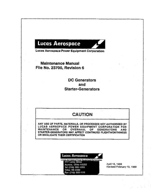$17.00| /Lucas Aerospace DC Generators and Starter-Gen. Maintenance Manual (23700)