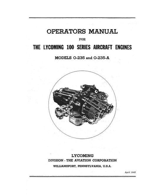 $16.00| /Lycoming 100 Series O-235,O-235A 1942 Operator's Manual (O235,A)