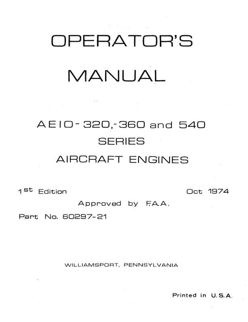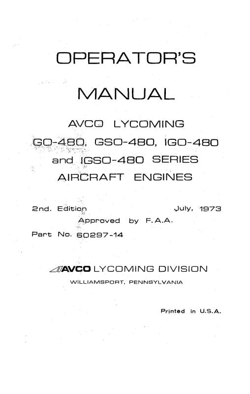 $16.00| /Lycoming GO,GSO,IGO,IGSO-480 Series Operator's Manual (60297-14-2)