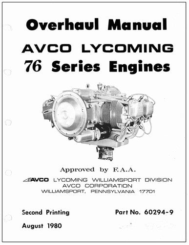 $35.00| /Lycoming 76 Series Engines 1980 Overhaul Manual (60294-9)