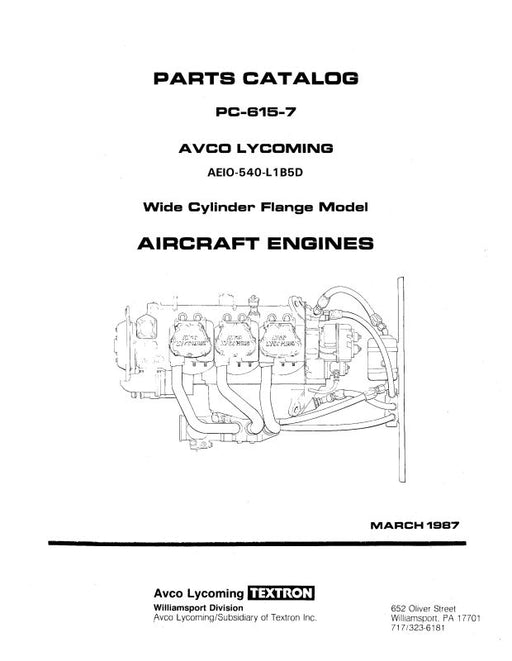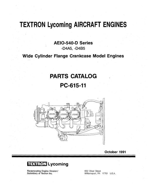 $31.00| /Lycoming AEIO-540-D4A5,-D4B5 1991 Parts Catalog PC-615-11 (PC-615-11)
