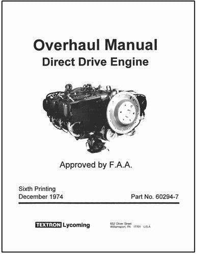 $35.00| /Lycoming Direct Drive Engine All Direct Drive Models Overhaul Manual (PART#60294-7-12)