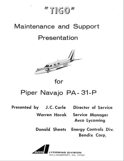 $40.00| /Lycoming "TIGO" Piper Navajo PA-31-P Maintenance & Support Presentation Manual