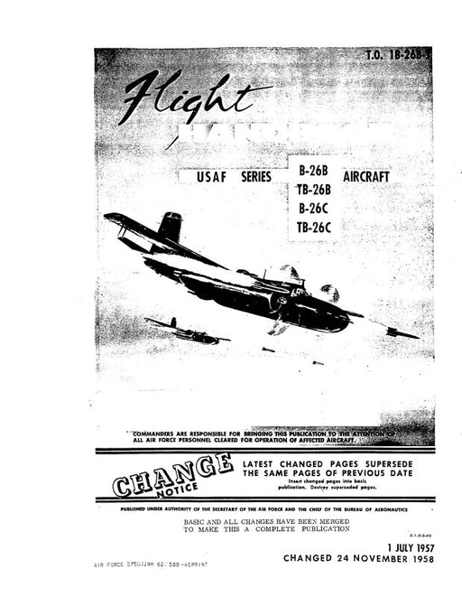 $66.00| /McDonnell Douglas B-26B,TB-26B,B-26C,TB-26C 1957 Flight Handbook (1B-26B-1)