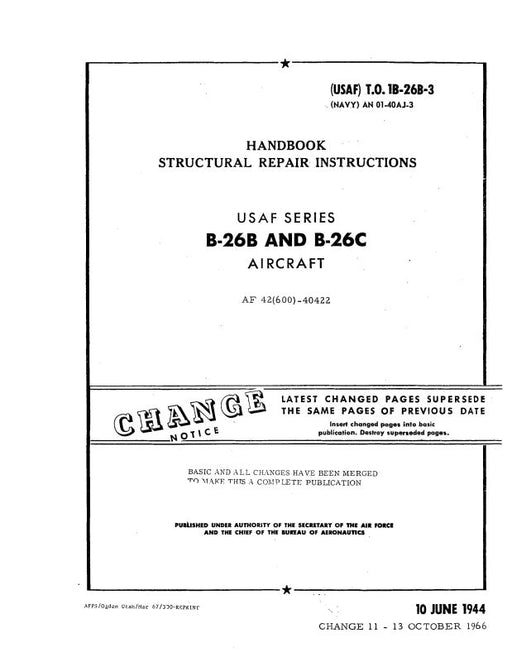$106.00| /McDonnell Douglas B-26B & B-26C 1944 Structural Repair Instructions Handbook (1B-26B-3)