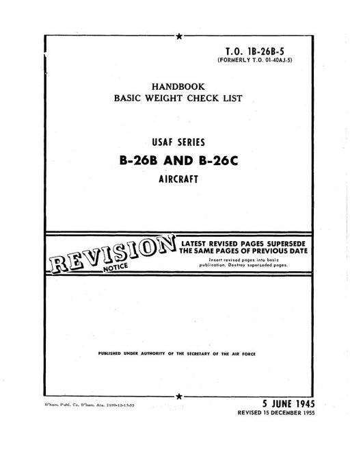 $16.00| /McDonnell Douglas B-26 1945 Basic Weight Pilot's Checklist (1B-26B-5)
