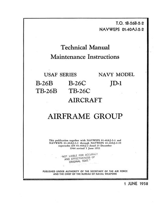 $29.00| /McDonnell Douglas B-26B,C, TB-26B,C & JD-1 Navy Maintenance Instructions (1B-26B-2-6)