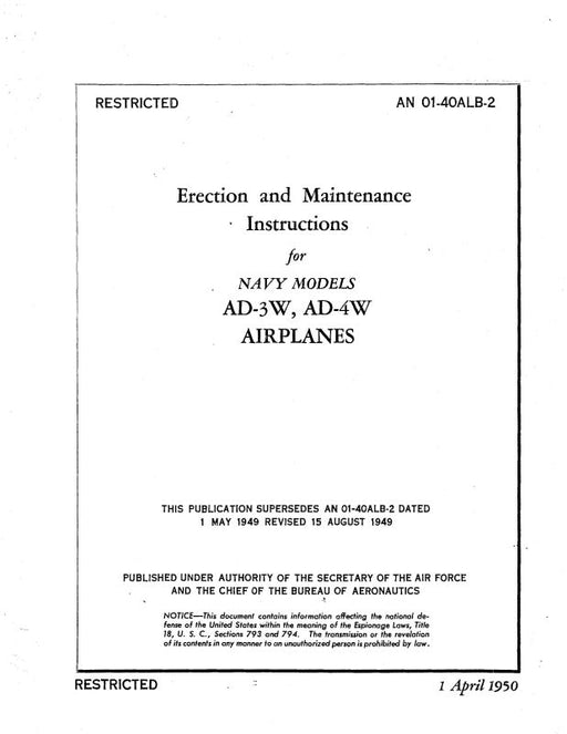 $152.00| /McDonnell Douglas AD-3W, AD-4W 1950 Erection & Maintenance Instructions (01-40ALB-2)