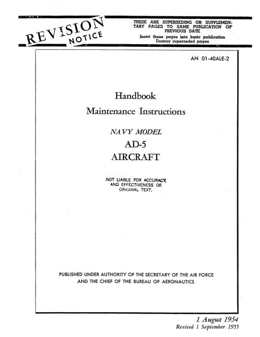 $208.00| /McDonnell Douglas AD-5 1954 Maintenance Instructions (01-40ALE-2)