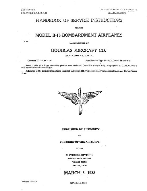 $98.00| /McDonnell Douglas B-18 Bombardment Airplanes1938 Maintenance Instructions (01-40EA-2)
