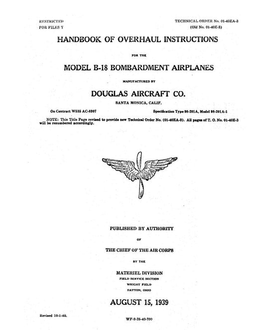 $22.00| /McDonnell Douglas B-18 Bombardment Airplanes1939 Overhaul Instructions (01-40EA-3)