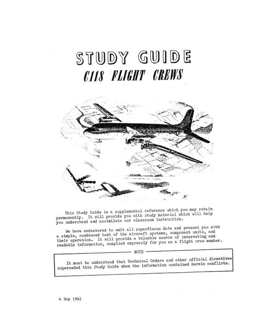 $70.00| /McDonnell Douglas C-118 Flight Crews 1962 Study Guide (MCC118-62-F-C)