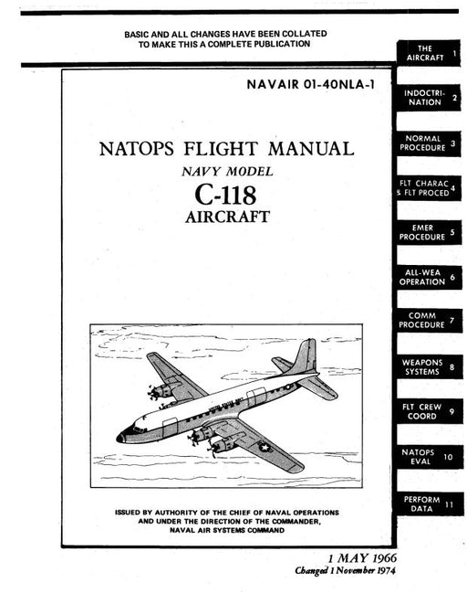 $179.00| /McDonnell Douglas C-118 Navy 1966 Flight Manual (01-40NLA-1)