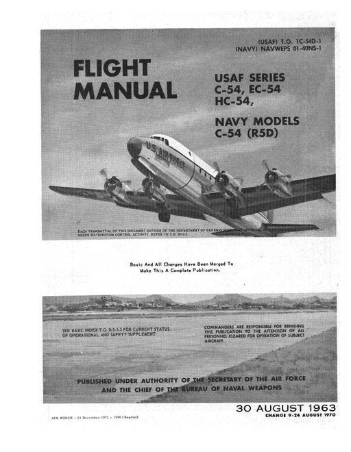 $54.00| /McDonnell Douglas C, EC, HC, TC-54 1963 Flight Manual (1C-54D-1)