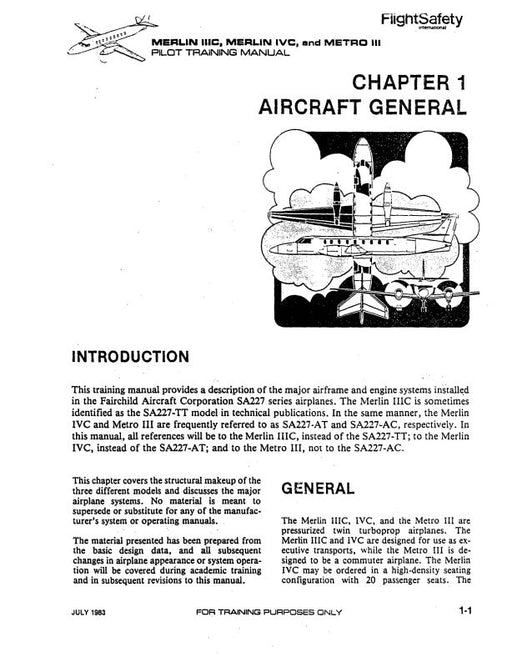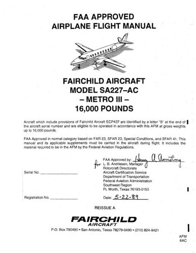 $100.00| /Merlin Aircraft SA-227-AC Metro III 1989 Flight Manual (MNSA227AC-89-FC)