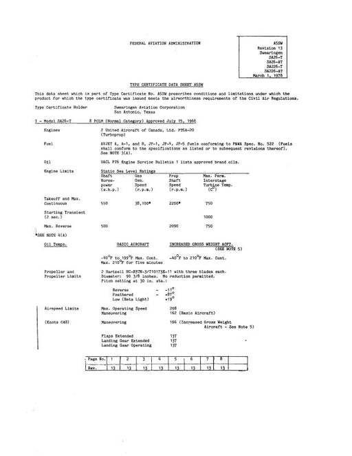 $9.00| /Merlin Aircraft SA26-T,AT,SA226-T,AT 1978 Aircraft Specification (SPEC.-NO.-A5SW)