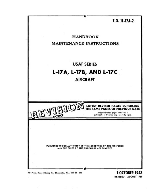 $55.00| /Navion L-17A, L-17B, L-17C 1948 Maintenance Instructions Handbook (1L-17A-2)Navion MilitaryRevised Aug. 1959 $55.00| /Sale