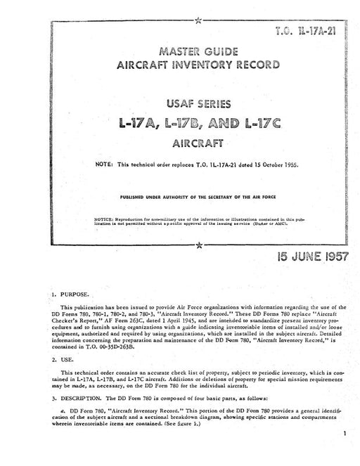 $8.00| /Navion L-17A, L-17B, L-17C 1957 Master Guide-Aircraft Inventory Record (1L-17A-21)Navion Military$8.00| /Sale