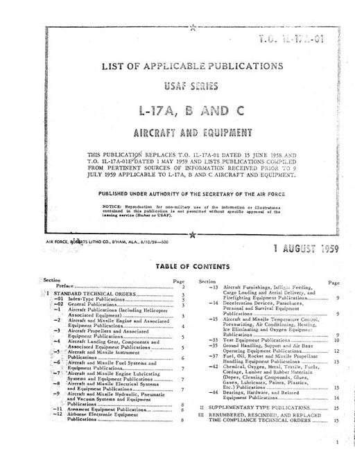$12.00| /Navion L-17A, L-17B, L-17C 1959 List of Applicable Publications (1L-17A-01)Navion Military$12.00| /Sale