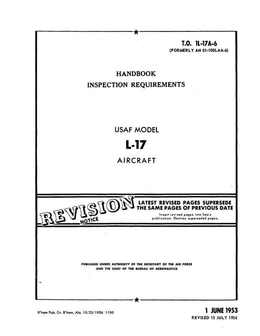 $16.00| /Navion L-17A, L-17B, L-17C 1951 Inspection Requirements Handbook (01-100LAA-6)Navion MilitaryRevised March 1952 $16.00| /Sale