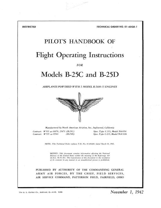 $25.00| /North American B-25C, B-25D 1942 Flight Operating Instructions (01-60GB-1)North American Military$25.00| /Sale