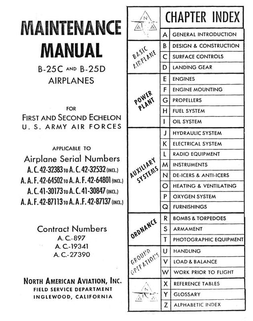 Sale $15.00| /North American B-25J Series Maintenance Instructions (1B-25J-2GEN)North American MilitarySection I: General Aircraft $15.00| /Sale