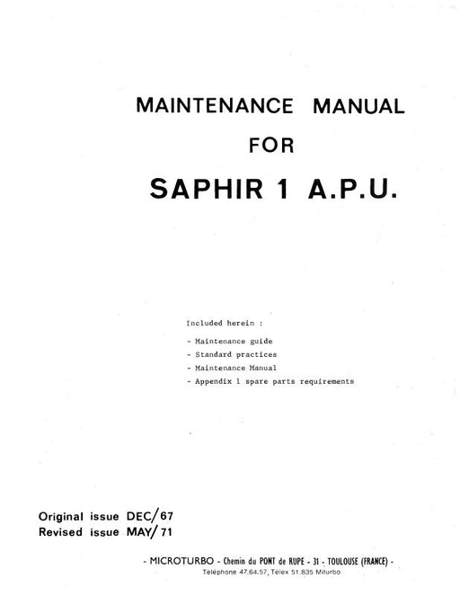 $63.00| /Microturbo Saphir 1 A.P.U Maintenance Manual 1967 (MISAPHIR-M-C)