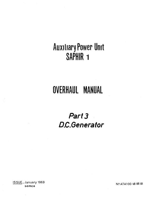 MicroturboAuxiliary Power Unit Saphir 1 Part 3 D.C. Generator Part 4 Tachometer Transmitter Part 5 Start Controller (Control Unit) Part 6 Controll...