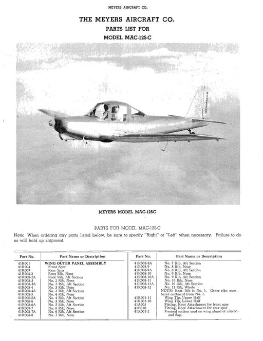 $13.00| /Meyers Aircraft Company MAC-125C Series Parts Catalog (MEMAC125C-P-C)