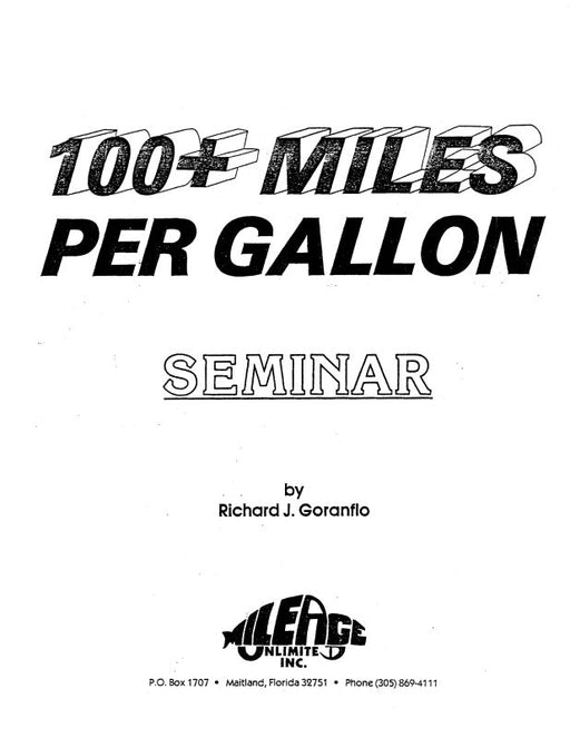 $17.00| /Mileage Unlimited Inc. 100+ Miles Per Gallon Seminar (MG100-82-SEM-C)