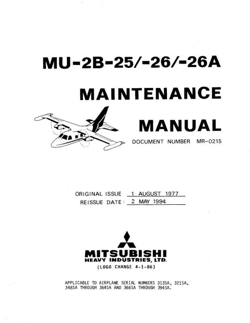 Sale $230.00| /Mitsubishi Heavy Industries MU-2B-25 1977 Maintenance Manual (MR-0215)