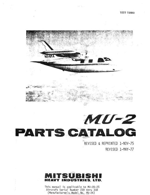 $207.00| /Mitsubishi Heavy Industries MU-2 Series 1975 Parts Catalog (YET-72092)