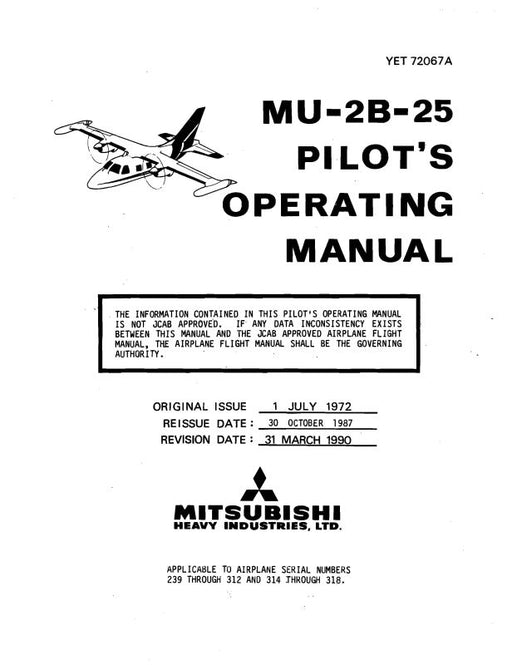 $89.00| /Mitsubishi Heavy Industries MU-2B-25 1972 Pilot's Operating Manual (YET-72067A)