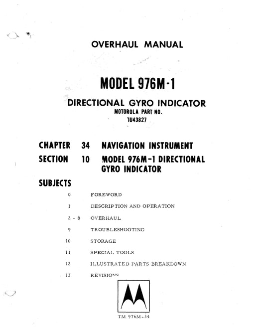$49.00| /Motorola 976M-1 Attitude Gyro Indicator Overhaul Manual (TM-976M-34)