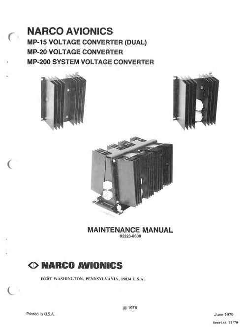 $25.00| /Narco MP-15, MP-20, MP-200 Voltage Converter Maintenance Manual 03223-0600
