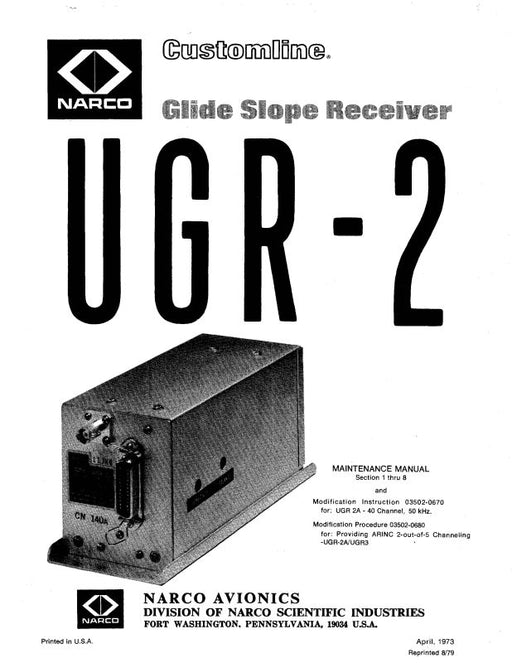 $29.00| /Narco UGR-2 Glide Slope Receiver1973 Maintenance Manual (03502-0670)