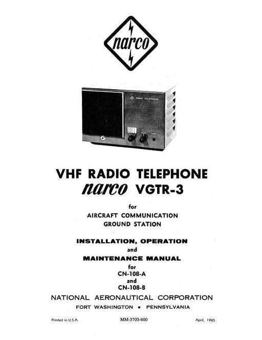 $26.00| /Narco VGTR-3 1965 Installation, Operation and Maintenance Manual (MM-3703-600)