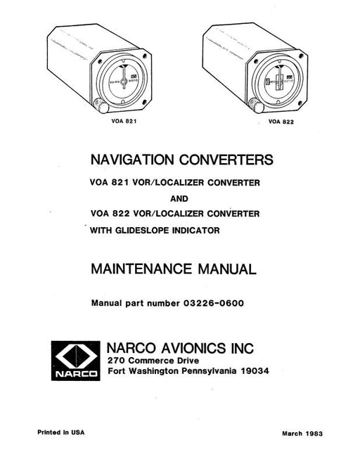 $58.00| /Narco VOA 821,822 1983 Maintenance Manual (03226-0600)