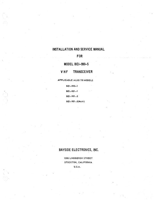 $31.00| /Bayside Electronics, Inc. Model BEI-990-5 VHF Transceiver Installation & Maintenance Manual (BYBEI9905-INM-C)