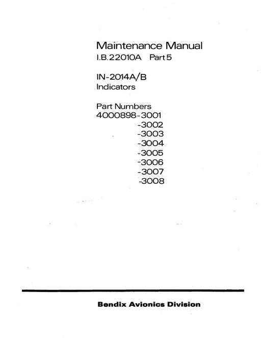 Bendix AvionicsI.B. 22010A Part 5 IN-2014A/B Indicators Part Numbers 4000898-3001, -3003, 3004, 3004, 3006, 3007, 3008
