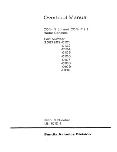 Bendix AvionicsRDR-1100/IN-2027A Weather Radar System Installation Manual. I.B.21100-1. Revised May 1980
