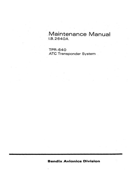 $52.00| /Bendix TPR-640 ATC Transponder 1971 Maintenance (2640A)