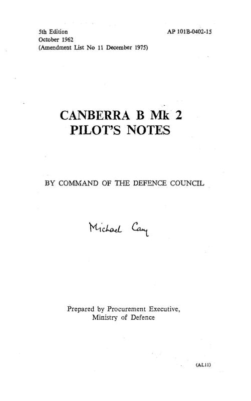 $29.00| /British Canberra B.Mk.2 Pilot's Notes 1962 (AP 101B-0402-15)