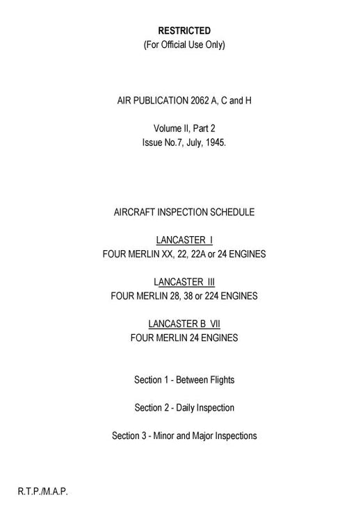 $161.00| /British Lancaster I, III, B.VII Aircraft Servicing Schedule (BSLANCASTERI,III,B.III-M-C)
