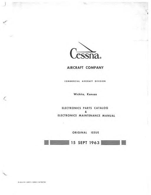 $40.00| /Cessna Electronics Maintenance, Parts Manual D214-13 1963Cessna Avionics1963-1964 150, 172, P172, 180, 185, 182, 205, 210, 336 $40.00| /Sale