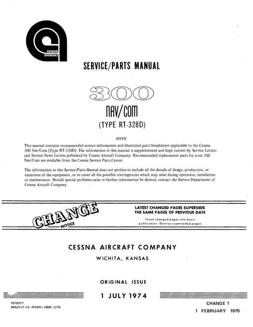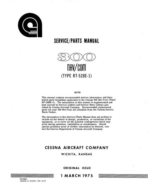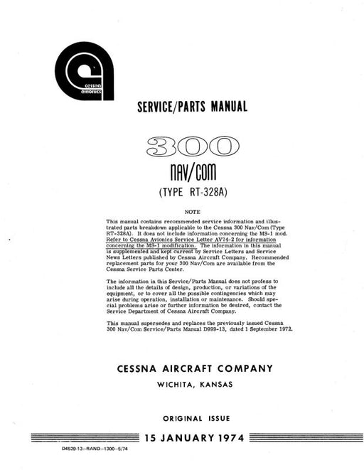 $40.00| /Cessna 300 Nav-Com RT-508A Maintenance & Parts Manual (D895-13)