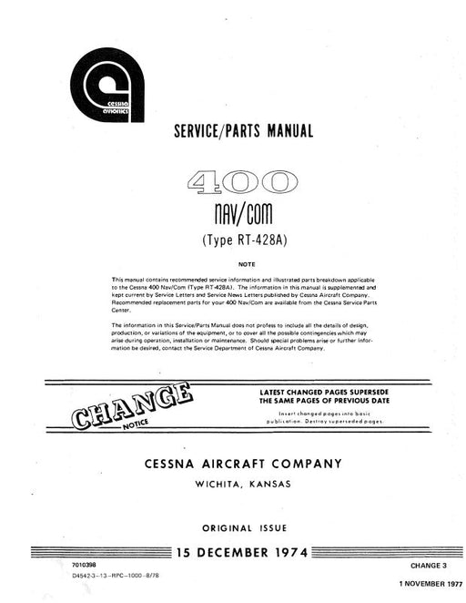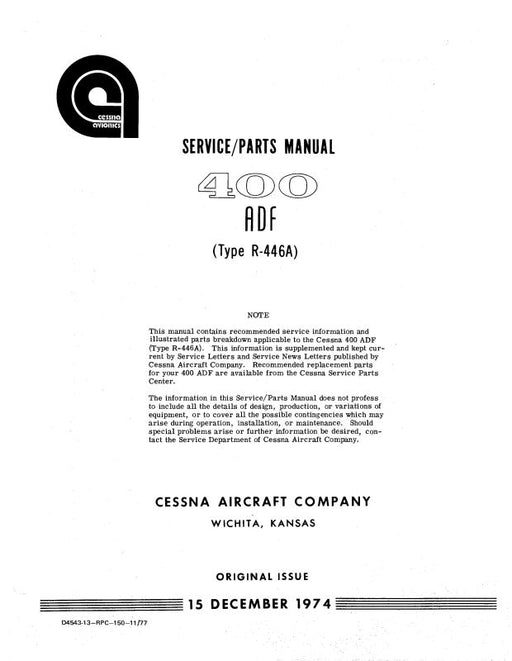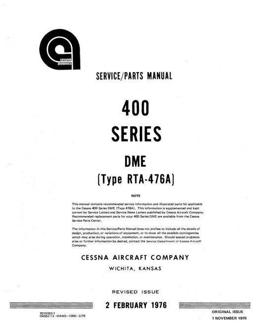 Sale $77.00| /Cessna 400-1000 DME 477A-1077B 1982 Maintenance & Parts Manual (CE477A-82-MP-C)