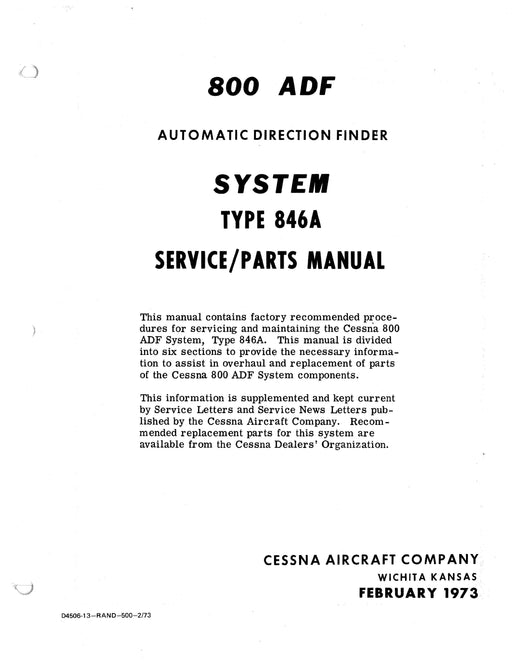 $47.00| /Cessna 800 ADF (Fixed Loop) Type 846A 1973 Maintenance & Parts Manual (D4506-13)Cessna Avionics$47.00| /Sale