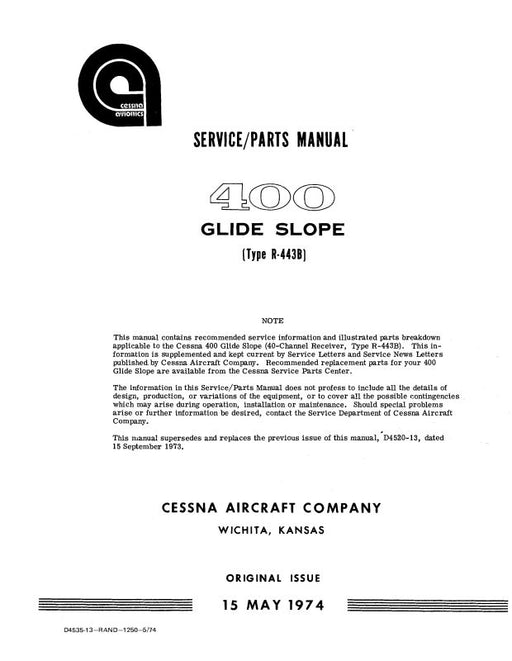 $39.00| /Cessna 400 GlideSlopeTypeAF-420A 1973 Maintenance, Parts Manual (D4514-13)Cessna Avionics$39.00| /Sale